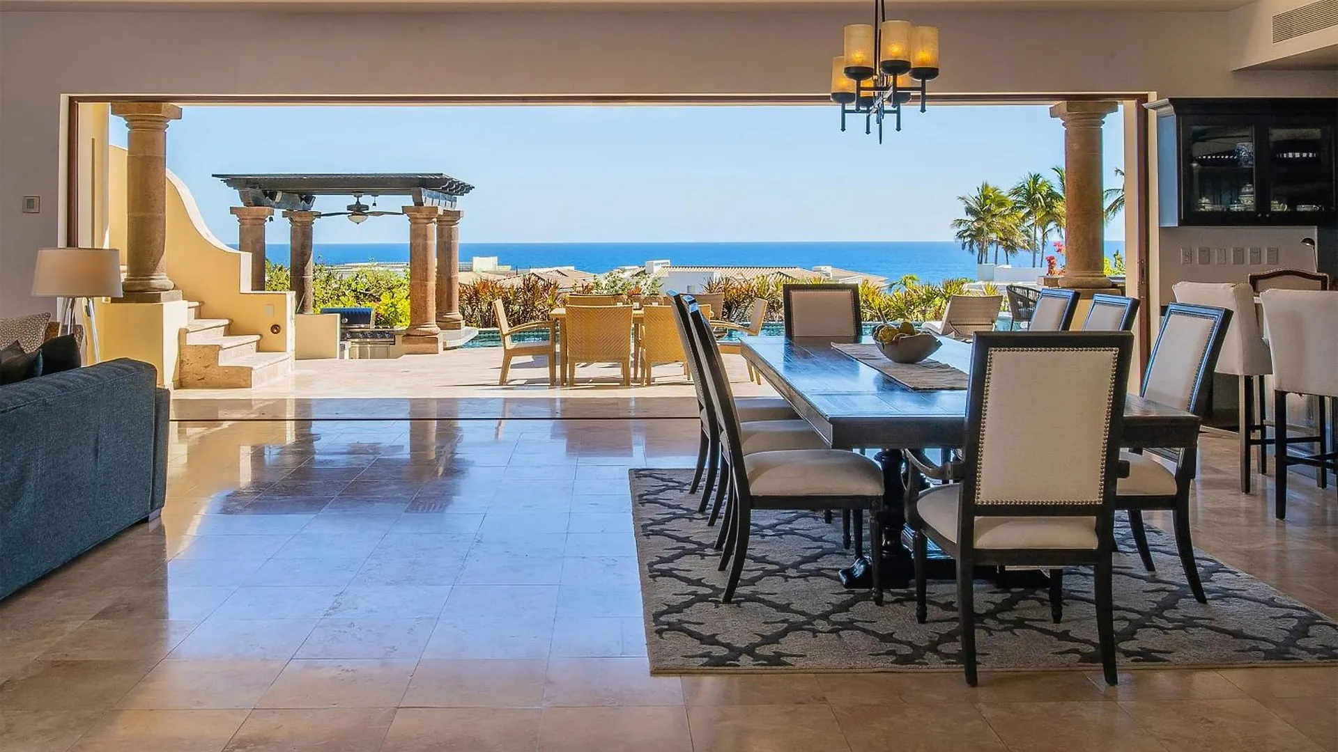 The 7-bathroom villa is approximately a 15-minute drive from Plaza Mijares, and San Jose del Cabo main square is around a 20-minute drive away.